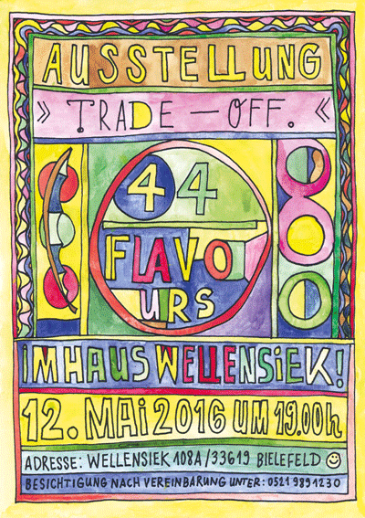 In der Ausstellung »TRADE – OFF« zeigen die beiden Künstler Julio Rölle und Sebastian Bagge, Alumni der FH Bielefeld, Malereien auf Leinwand und Airbrush-Holzschnitte auf Papier aus zwei Serien, die im letzten Jahr entstanden sind. Die Werke sind geradezu typisch für ihre Zusammenarbeit, da sie im Austausch-Prozess entstanden sind.